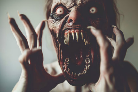 Frightening Zombie Creature with Menacing Stare and Bared Teeth in a Horror Concept AI Generative