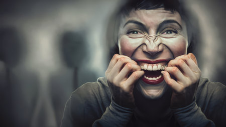 Close up portrait of evil scary girl possessed by a demon with a sinister smile