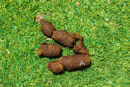 Close Up Dried cow dung on the green grass, Compost fertilizer shit for the environment, Top view texture background