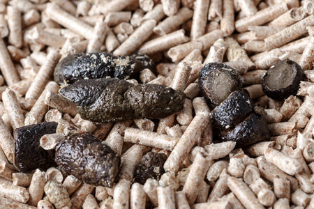 Cleaning in a toilet. In a wood pellet.A cat toilet with cat litter.