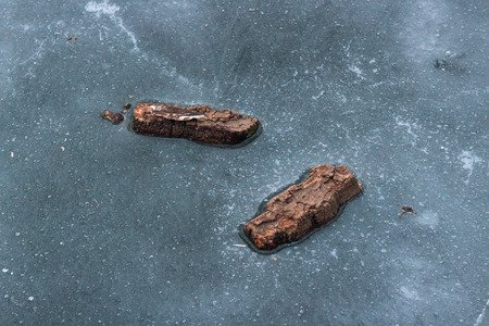 Dog feces lying on the sidewalk. Use the bags to clean the excrement of your Pets.