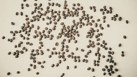 Banner- long format. Coffee beans on a illuminating background with a blank space for your advertisement. . High quality photo