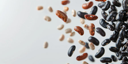 A captivating image showcasing various colorful dried beans floating against a soft pink background, perfect for culinary inspirations and nutrition-focused themes.