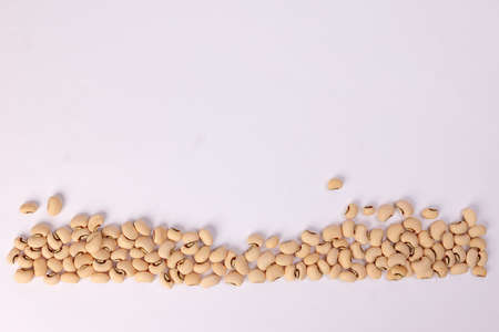 Blackeye beans top view horizontal vertical line frame copy text space on white background