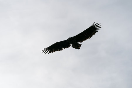 The Bearded Vulture soaring high above a rugged mountain landscape