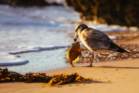 Seagull on seashore, close photo of the seagull, seagull in flight