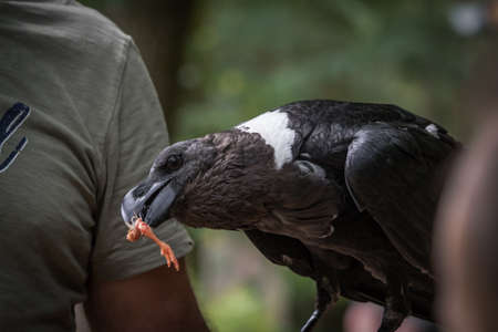 A vulture raven closeup in a falcrony in saarburg, copy space