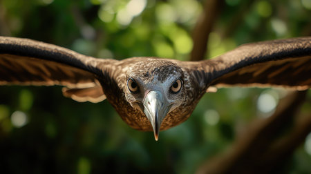 An eerie presence creeps through the dark with a chilling screech its wings spread wide like a vulture. Gothic art. AI generation