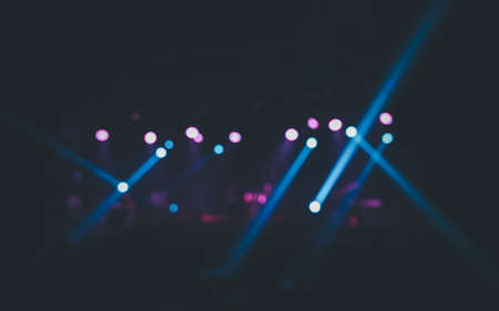 Stage lights glowing in the dark. Live music festival concept background