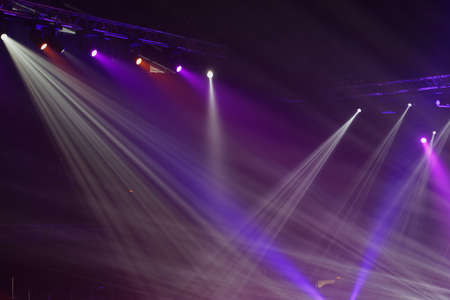Light from the spotlights on the stage in a dark room illuminated by the spotlight