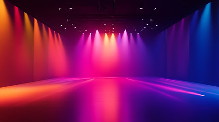 Dynamic light show event in modern venue colorful illumination indoor space artistic perspective