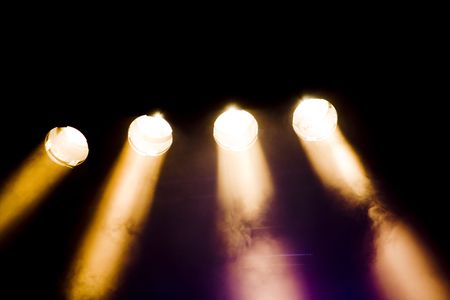 four spotlights on a stage with light source.
