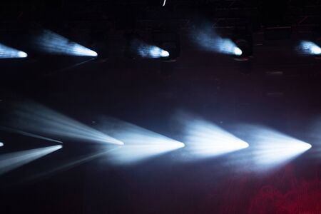 Stage lights of different colors, background of glowing blue and red spotlights