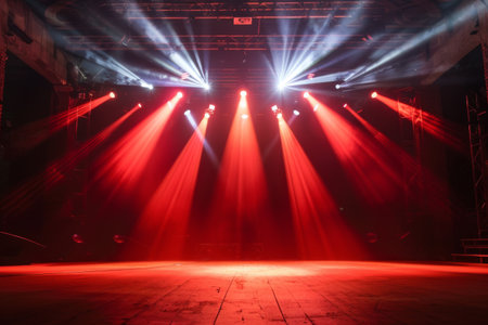 Stage with bright red and blue lights shining down, creating a vibrant and dynamic atmosphere, AI generated