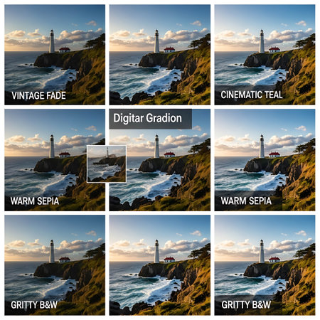 Collage highlights the beauty of skies under varied weather conditions, showcasing sunlight, clouds, and the impact of climate on urban and natural backdrops.