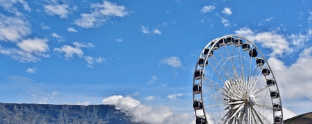 Ferris wheel on cloudy sky background outdoor in amusement park