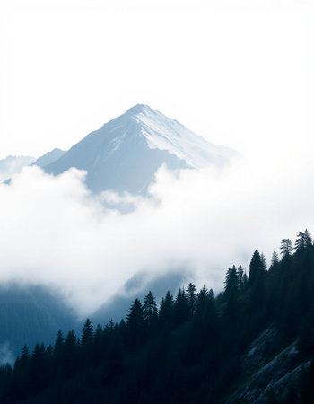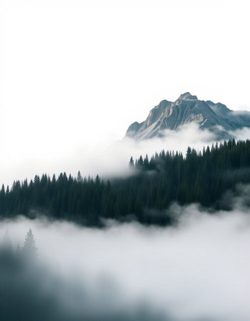 Majestic Mountain Peaks Enveloped in Misty Autumn Forest Scenic Winter Landscape Photography fog fir