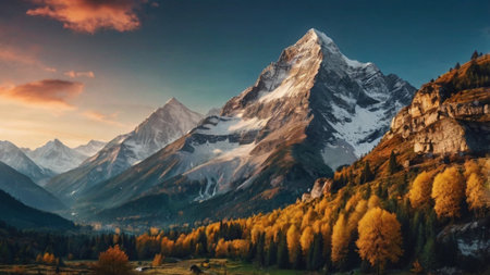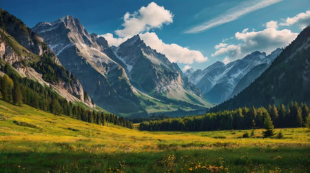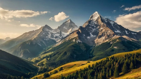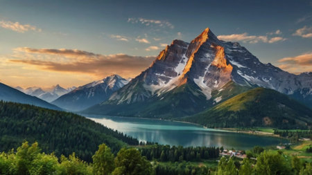 An AI generated illustration of majestic mountains revealing the majestic calm crisp beauty of nature
