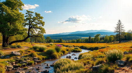 Mountain meadows and rivers natural scenery