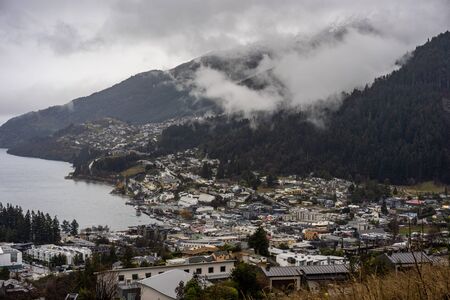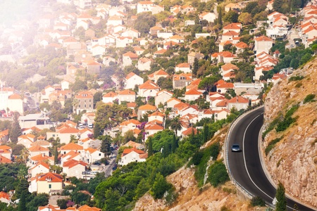 Vacation home and real estate concept. Villas in coastal town in mountains