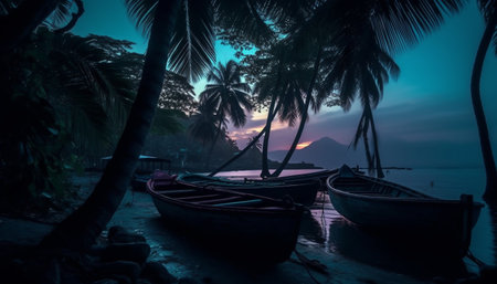 Tranquil sunset on nautical vessel at sea generated by artificial intelligence