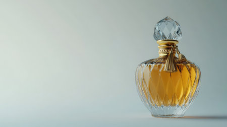 A striking golden perfume bottle exuding elegance, set against a smooth background. This exquisite piece is perfect for showcasing luxury and sophistication.