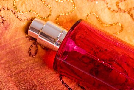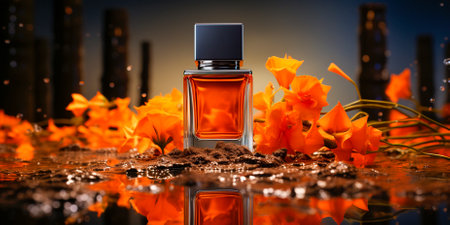 bottle of parfum on orange background