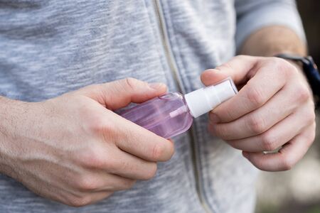 the use of antiseptics by a man on the street