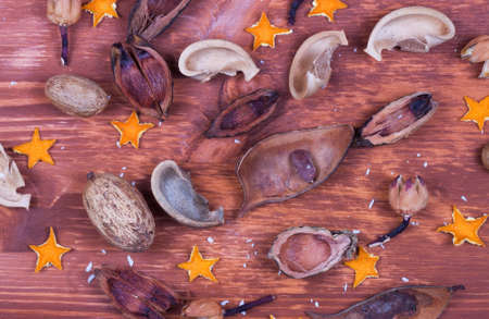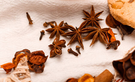Brown star Anise scattered on the table