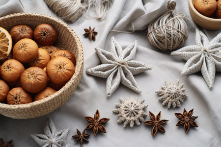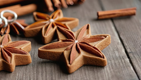 Jingle bell gingerbread cinnamon star anise on table