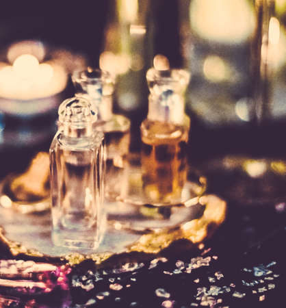 Perfumery, cosmetic branding and spa concept - Perfume bottles and vintage fragrance at night, aroma scent, fragrant cosmetics and eau de toilette as luxury beauty brand, holiday fashion parfum design