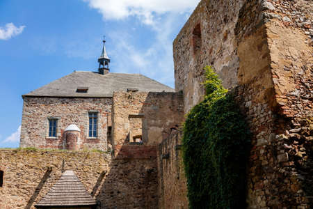 A view of Mansfeld Castle in Saxony-Anhalt in spring under blue skies
