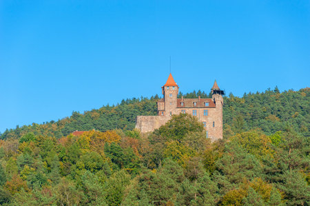 Landscape with view of Berwartstein Castle near Erlenbach. Region Palatinate in state of Rhineland-Palatinate in Germany