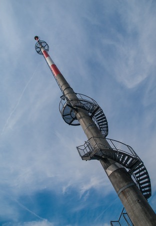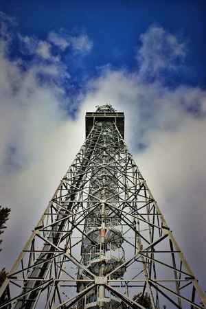 Lookout tower with spiral staircase built on TV transmitter, Vlci Hora, Czech Republic, diagonal composition