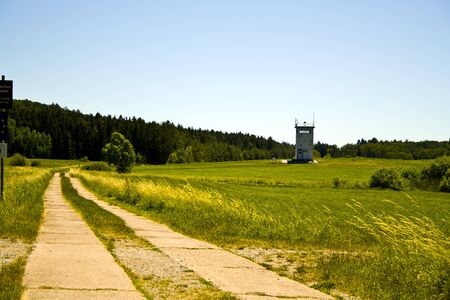 BEHRUNGEN, THURINGIA, DDR MONUMENT, GERMANY - JUNE 27, 2019 Border road of the former inner German borders between GDR and Germany at Behrungen with watchtower