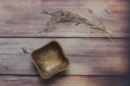 Wooden bowl on the wood with vintage effect