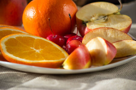 Fruit in preparation for a delicious fruit salad. Close-up of fruit structure and beautiful colors.