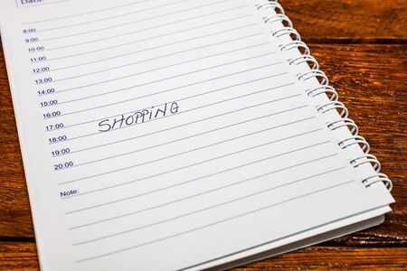 Schedule your appointment now with day planner and sticky note on a weather wood desk