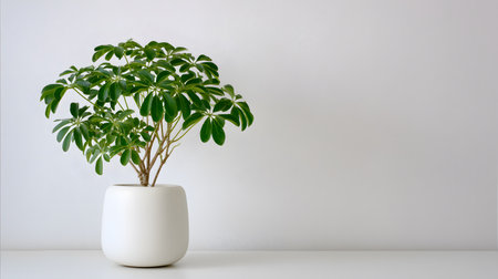 Elegant Umbrella Plant White Schefflera Actinophylla in Minimalist Style