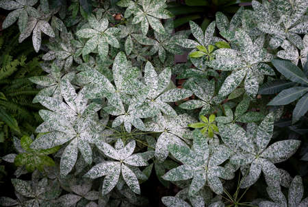 Schefflera arboricola, Variegated Umbrella Plant Foliage Leaves Natural Pattern Background