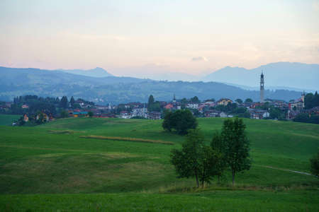 Mountain valley village landscape summer