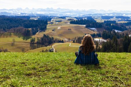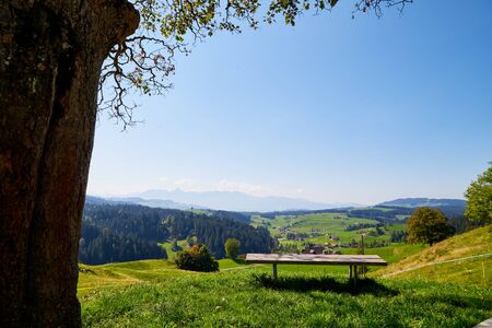 View in the Zurich Oberland of the surrounding hills in this beautiful spring season. foresight in the mountains. Swiss