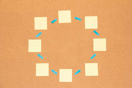 Creative composition with sticky note papers on blue background