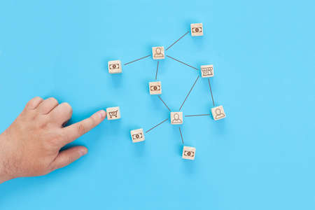 Teamwork and networking concept with wood blocks connected.