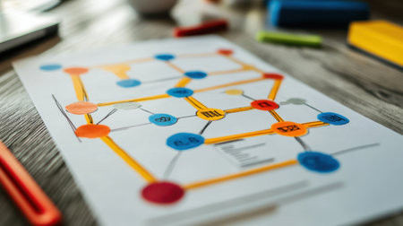 This image showcases a vibrant flowchart design filled with colorful shapes and arrows, perfect for visualizing ideas and mapping out processes effectively.