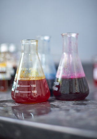 Laboratory test beaker with colored liquids