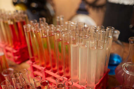 colorful test tubes in a chemical laboratory