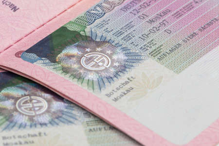 Elevated View Of Visum Text On Passport. German Schengen Visa