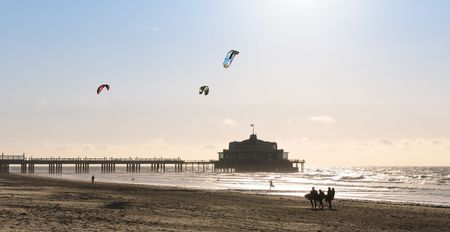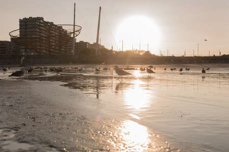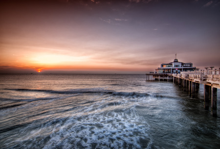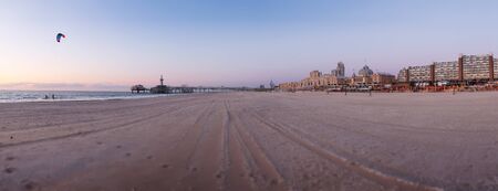 North Sea beach at sunset. Town Blankenberge, West Flanders, Belgium