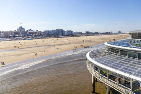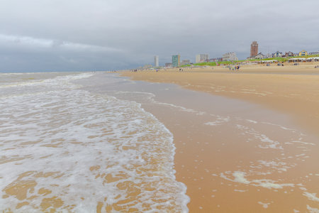 SCHEVENINGEN, NETHERLANDS - AUG 10: View over the beautiful North Sea beach in Scheveningen. August 10, 2015 in Scheveningen, The Netherlands